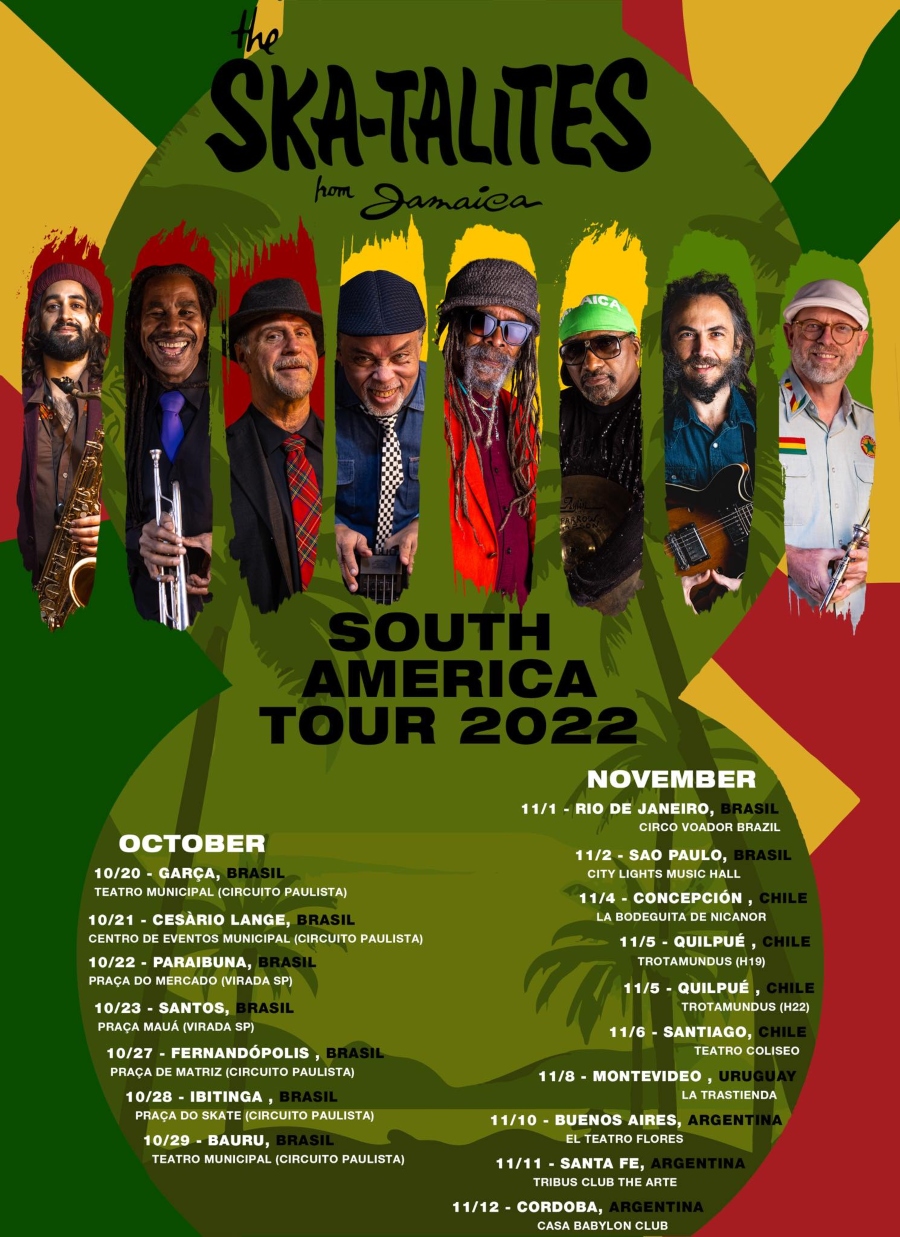 Las raíces de la música jamaiquina, los inventores del ska, la primera banda de Bob Marley, The Skatalites está de gira por Sudamérica y vuelve este sábado 12 de noviembre a tocar en Casa Babylon (Bv Las Heras 48)
